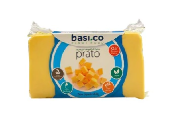 Ingredientes: Leite de castanha de caju (Água e castanha de caju), óleo de girassol, amido de batata, óleo de coco palmiste, polvilho doce, sal marinho, Extrato de levedura, Corante natural Urucum, Goma carragena, Ácido lático (obtido por fermentação de cana de açúcar), Fosfato tricálcico e Goma xantana.
